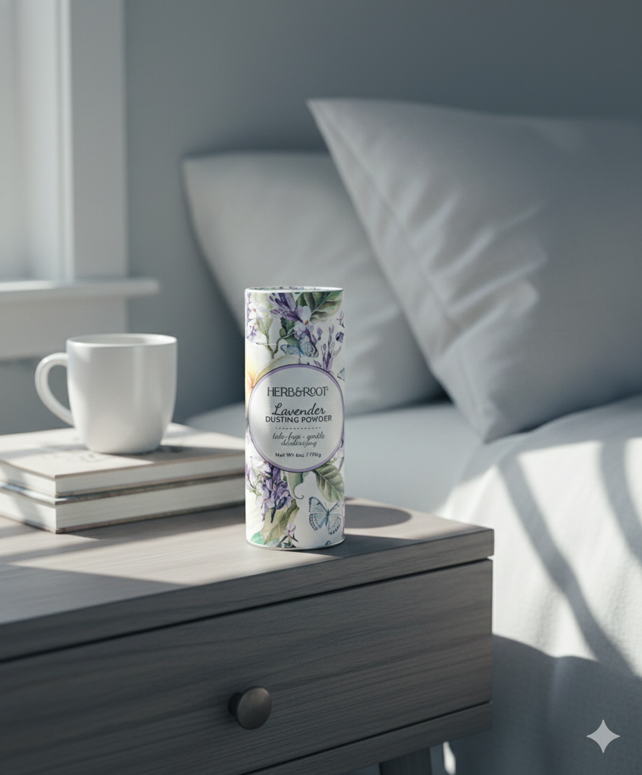 A calming, talc-free botanical powder infused with soft lavender. Keeps skin dry, smooth, and comfortably fresh.